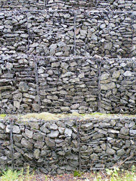 不穩定的巖質山坡下的建筑物存在地質威脅,為了減小原來巖質山坡對建筑和一些設施的潛在威脅,需要對巖質山坡進行防護。在滿足工程需要的情況下考慮到與環境生態的效果。在有巖石突出的山坡下面采用擋墻形式。石頭可以就近取材,生態格賓網采用高鍍鋅鋼絲外包PVC材料,PVC覆層采用灰色以便與環境相和諧。山坡下的網箱結構可以有效阻擋突出巖石山坡落下的碎石和滑土,同時格網結構就近取石材,結構與環境融為一體。生態格賓網結構對基礎要求不高,而且便于施工,施工速度快,造價低。安裝過程中將多個網箱或網墊綁扎在一起,形成一個均勻的結構,整體性好,能抵擋落石對擋墻結構的沖擊。