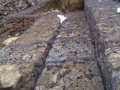 格賓石籠擋墻,是格賓石籠層疊堆砌的擋土建筑物。格賓石籠擋墻的構件是在網箱內部填充大小比例相當的石塊,這樣就有一定的孔隙率,由于石塊之間的間隙,可以排出砌體后面的土壤和護坡下面土層的水,這樣就降低了水位,減少墻體后和坡下的地表水壓力,水及時排出降低了擋土墻被破壞的幾率,這樣格賓石籠擋墻的壽命會大大的延長。同時墻體網箱是鐵絲網制作的籠子,能夠有一定的變形,況且,石塊與石塊之間,也可以滑動,所以格賓石籠擋墻的變形能力也能夠緩沖突發的外力。