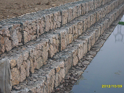 格賓石籠擋墻護堤的常用網孔是8×10cm,10×12cm,這兩種網孔對應的絲徑范圍是2-3mm,常見的網箱尺寸是2×1×1m,2×1×0.5m等。格賓石籠具有抗沖刷能力強、自透水性、整體性強、地基適應性強、抗風浪性強、施工簡便、造價低廉等特點。